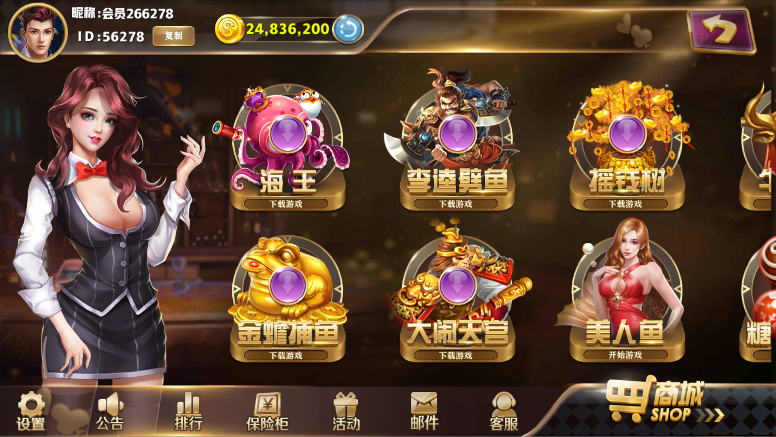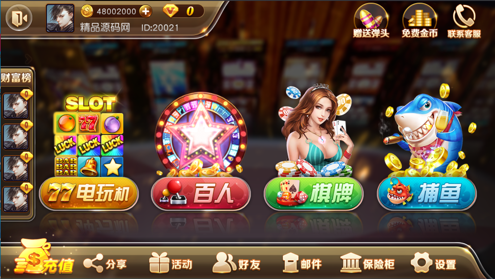 源码介绍: 游戏相当不错,站长亲自测试了下 功能都正常没啥问题 精美前端界面,子游戏众多,包括了拉霸类游戏,百人类游戏,捕鱼类游戏和棋牌类游戏,有智能陪玩机器人...