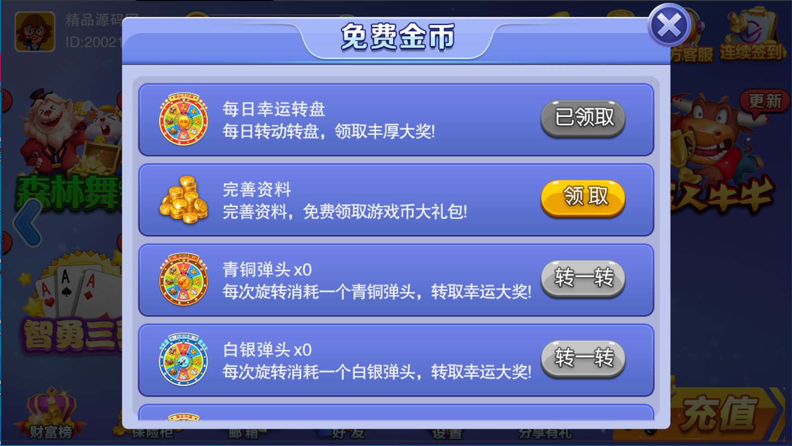 源码介绍: 游戏相当不错,站长亲自测试了下 功能都正常没啥问题 精美前端界面,子游戏众多,包括了拉霸类游戏,百人类游戏,捕鱼类游戏和棋牌类游戏,有智能陪玩机器人,代理系统,精准ID点控 亲测时顺便清除了程序中的后门文件和木马,并且录制了详细的搭建教程 整合修复优化了这套全新富贵3镜像,一键开通实例搭建部署,服务器环境什么的都搞好了,搭建起来非常方便 就算是刚入门的小白使用本站配套程序跟着本站教程,亦能成功搭建 平台共计43款子游戏: 拉霸类游戏:疯狂的7、武财神、疯狂的猴子、疯狂麻将、火焰连击、多财多福、财神赐福、上海百家门、五龙争霸、三只猴子、金龙献宝、黄金龙王、恭喜发财、金鸡报喜、水浒传 百人类游戏:红黑大战,龙虎斗,宝马游戏、六狮王朝、飞禽走兽、五星宏辉、金鲨银鲨、水果机、森林舞会、关公战秦琼、百人牛牛、百人乐、豪车漂移、摇一摇、推简子 捕鱼类游戏:神龙宝藏、摇钱树、李逵劈鱼、皇家礼炮、金蟾捕鱼、淡水鱼、海王2 扑克类游戏:跑得快,十三水,斗地主,智勇三张、二人牛牛、通比牛牛、斗牛 |
